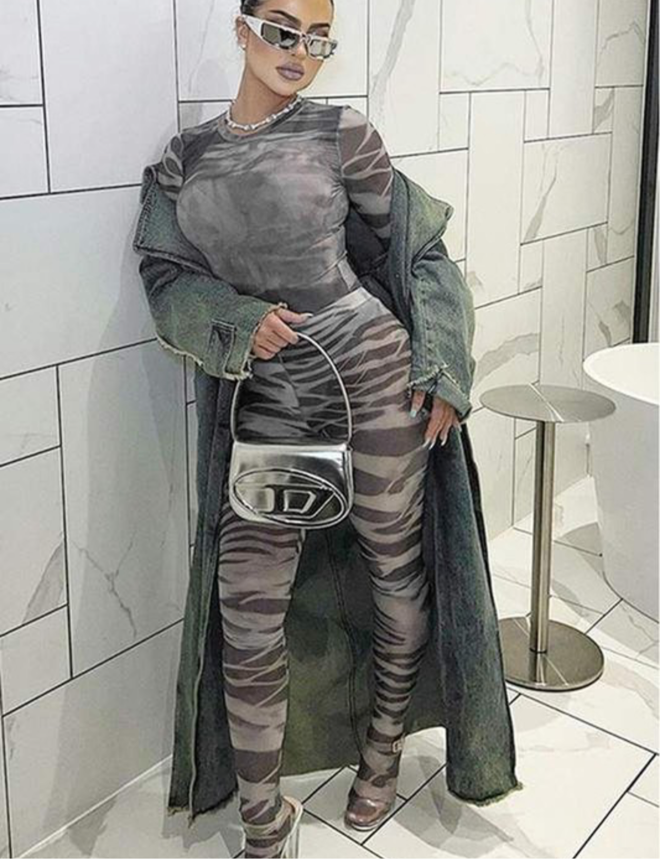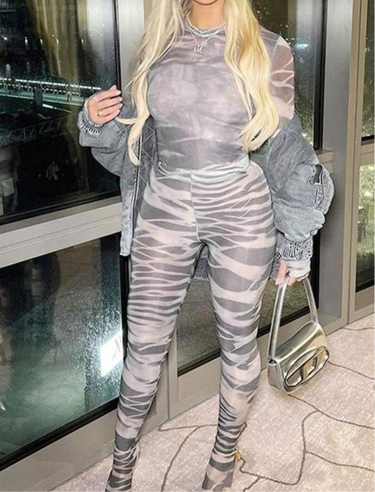 "Ice Spice" Mesh Bodysuit & Pants Set